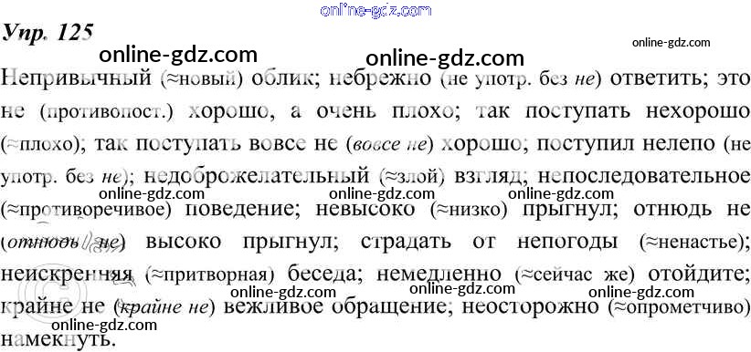 Готовые домашние задания по Русскому языку за 7 класс Учебник Разумовская, Львова УМК 2014 - Упражнения 125