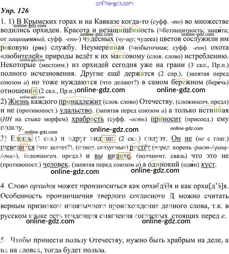 Готовые домашние задания по Русскому языку за 7 класс Учебник Разумовская, Львова УМК 2014 - Упражнения 126
