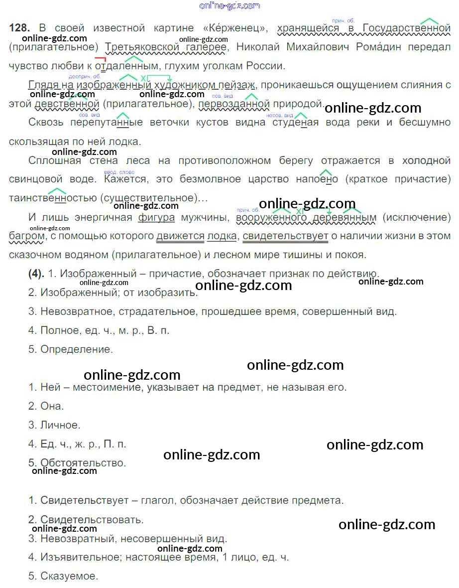 Готовые домашние задания по Русскому языку за 7 класс Учебник Разумовская, Львова УМК 2014 - Упражнения 128