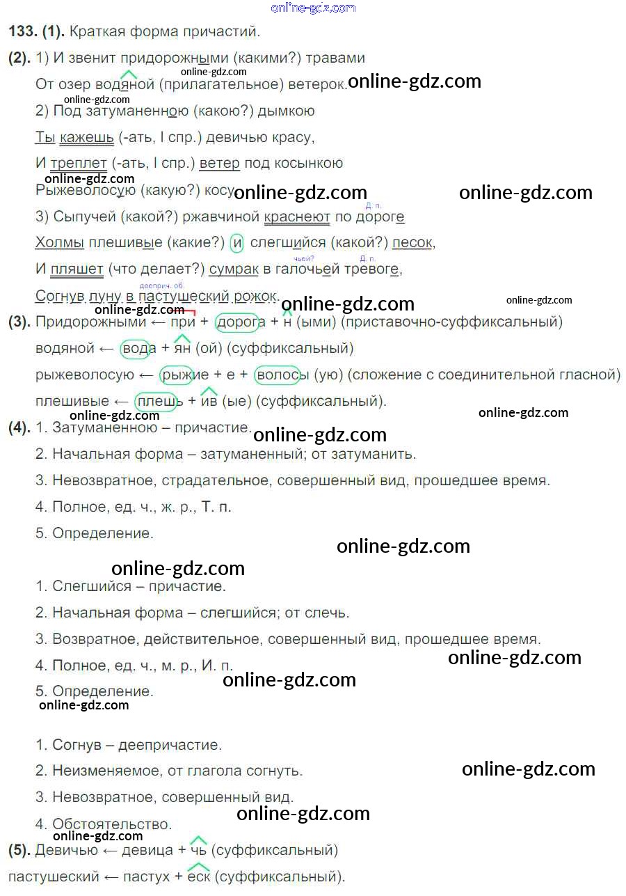 Готовые домашние задания по Русскому языку за 7 класс Учебник Разумовская, Львова УМК 2014 - Упражнения 133