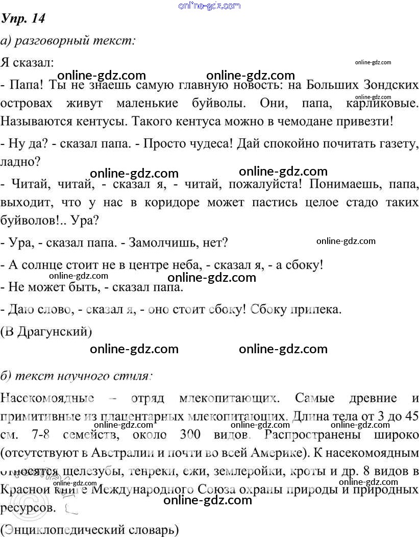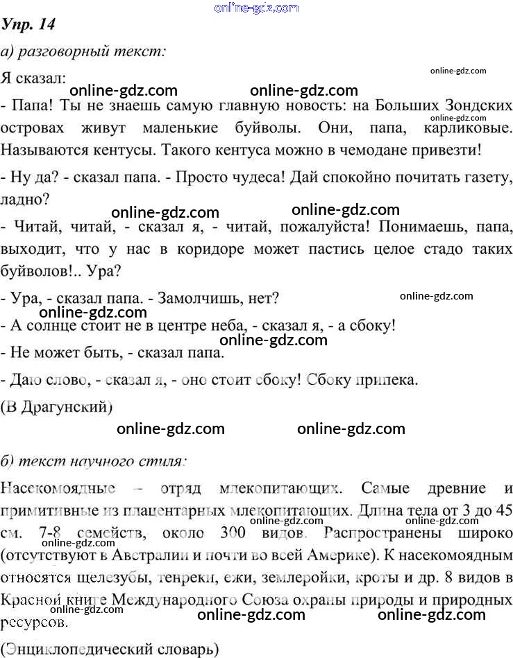 Готовые домашние задания по Русскому языку за 7 класс Учебник Разумовская, Львова УМК 2014 - Упражнения 14