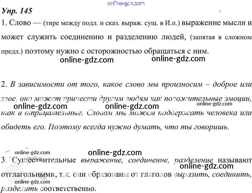 Готовые домашние задания по Русскому языку за 7 класс Учебник Разумовская, Львова УМК 2014 - Упражнения 145