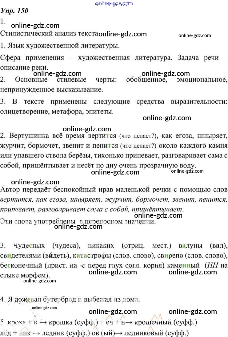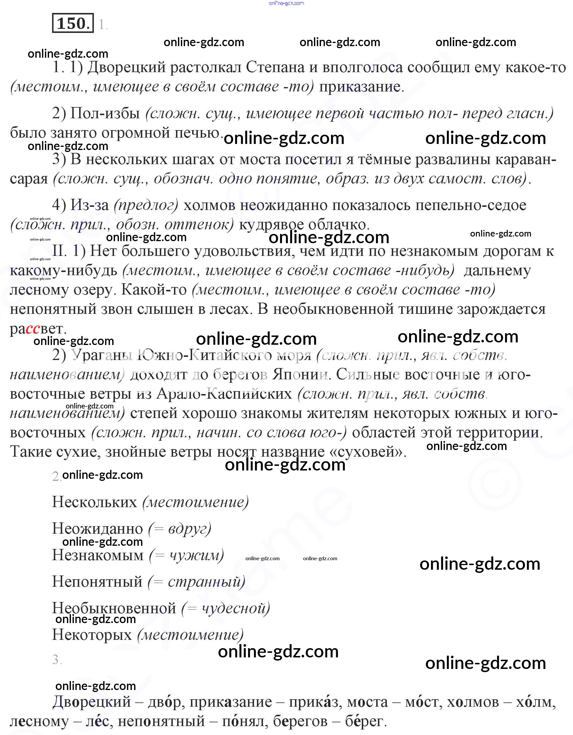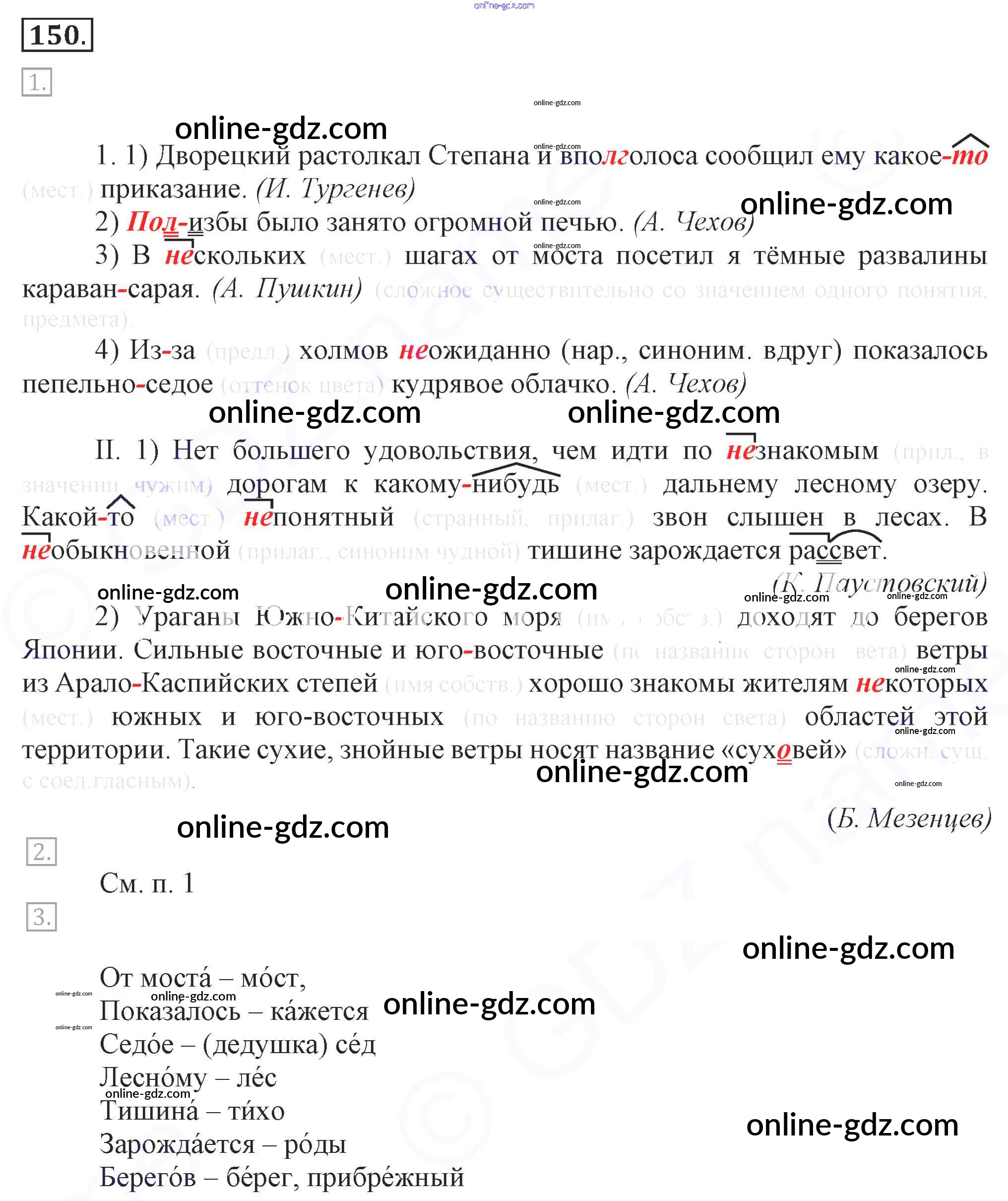 Готовые домашние задания по Русскому языку за 7 класс Учебник Разумовская, Львова УМК 2014 - Упражнения 150