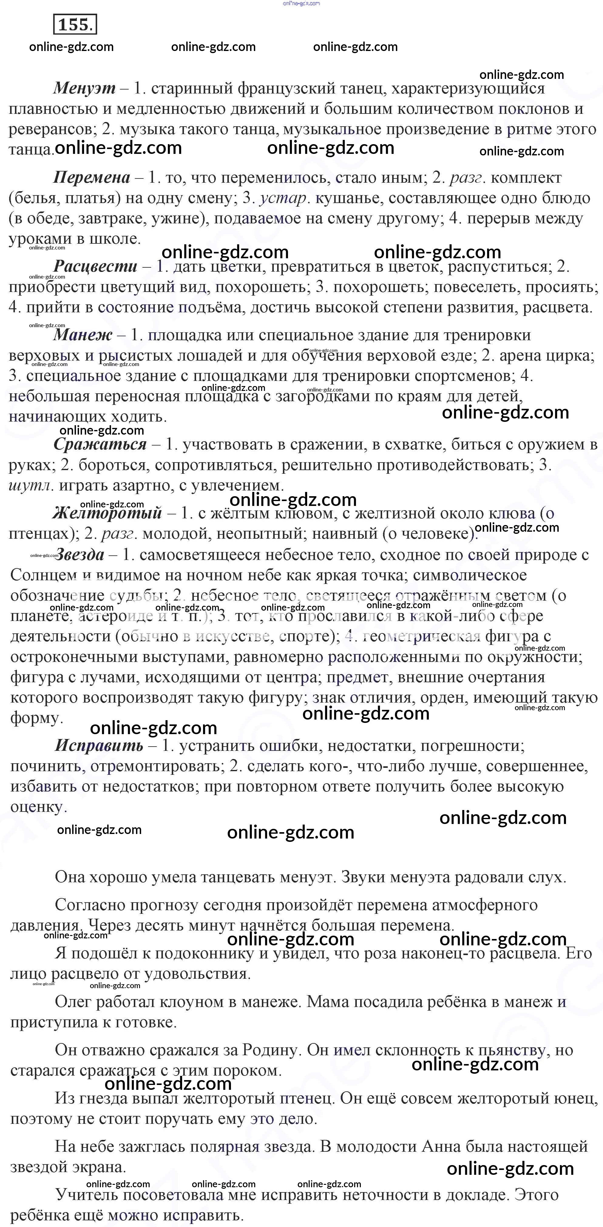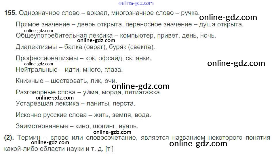 Готовые домашние задания по Русскому языку за 7 класс Учебник Разумовская, Львова УМК 2014 - Упражнения 155