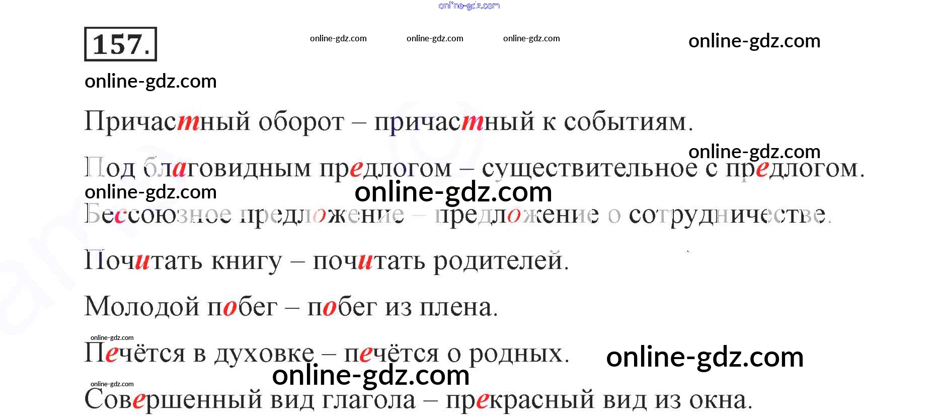 Готовые домашние задания по Русскому языку за 7 класс Учебник Разумовская, Львова УМК 2014 - Упражнения 157