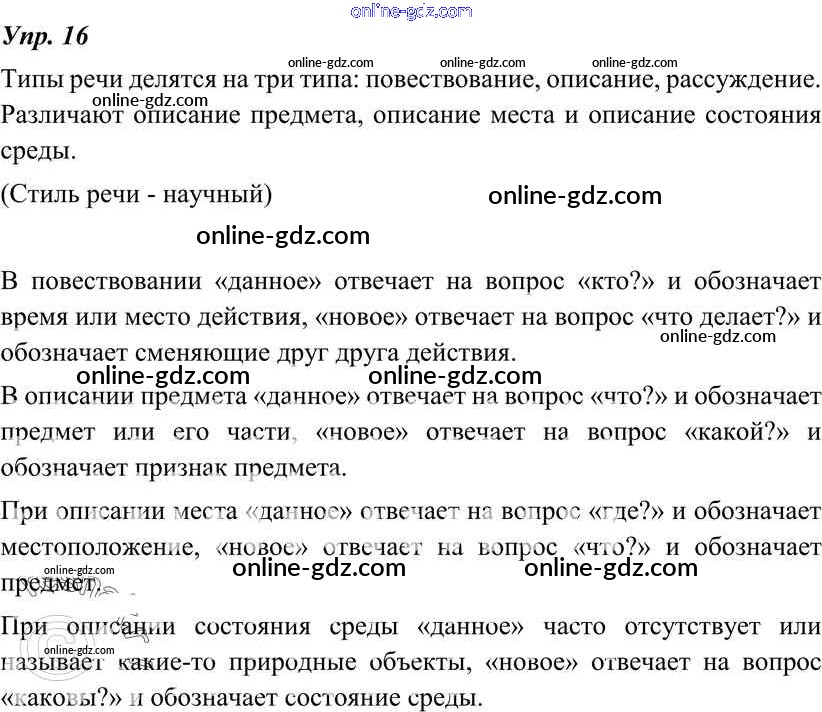 Готовые домашние задания по Русскому языку за 7 класс Учебник Разумовская, Львова УМК 2014 - Упражнения 16