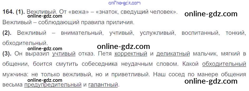 Готовые домашние задания по Русскому языку за 7 класс Учебник Разумовская, Львова УМК 2014 - Упражнения 164