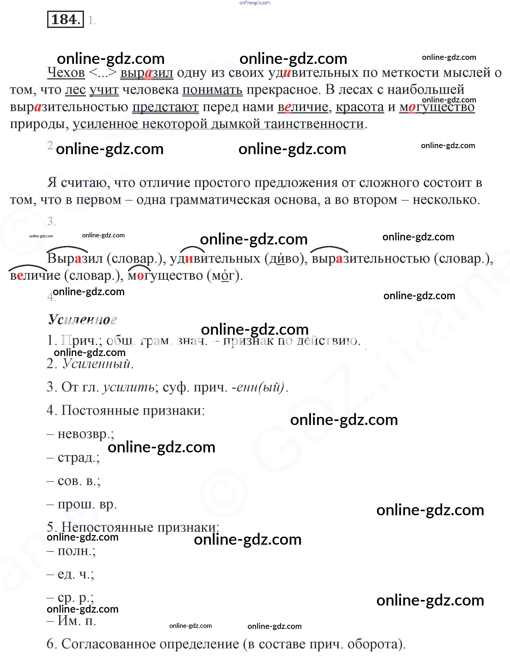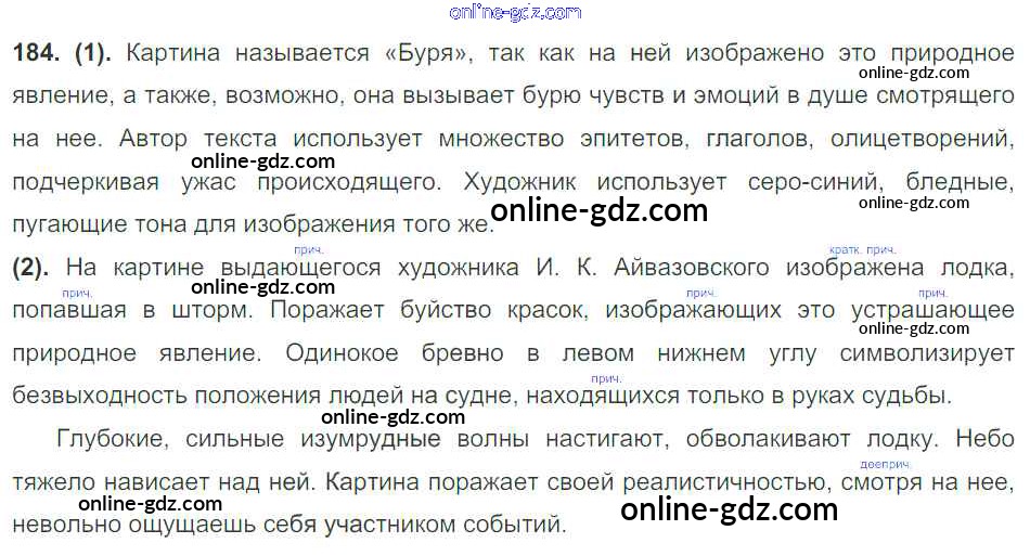 Готовые домашние задания по Русскому языку за 7 класс Учебник Разумовская, Львова УМК 2014 - Упражнения 184