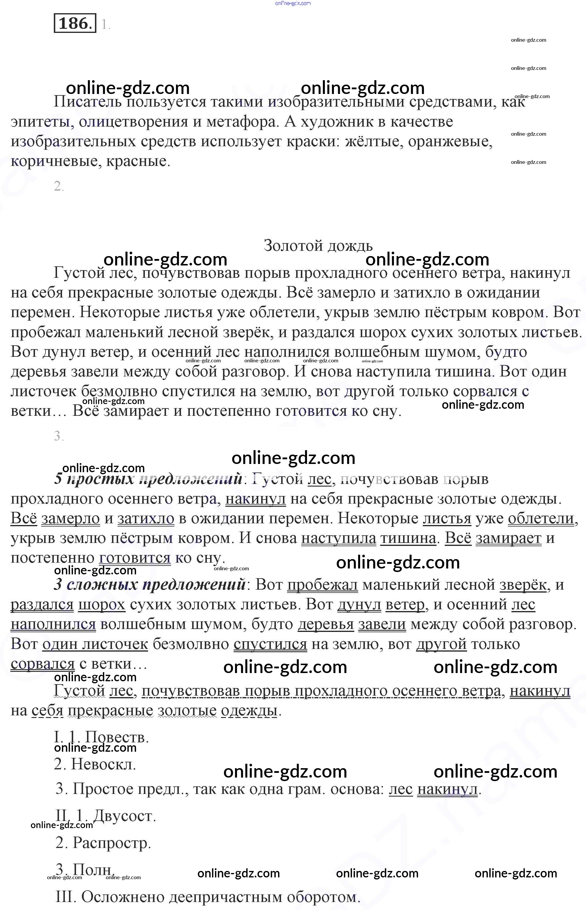Готовые домашние задания по Русскому языку за 7 класс Учебник Разумовская, Львова УМК 2014 - Упражнения 186