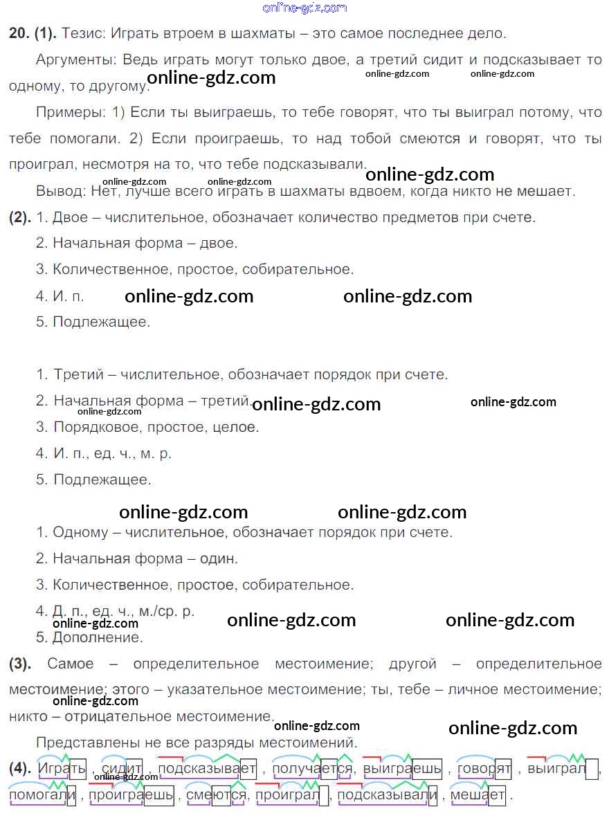 Готовые домашние задания по Русскому языку за 7 класс Учебник Разумовская, Львова УМК 2014 - Упражнения 20
