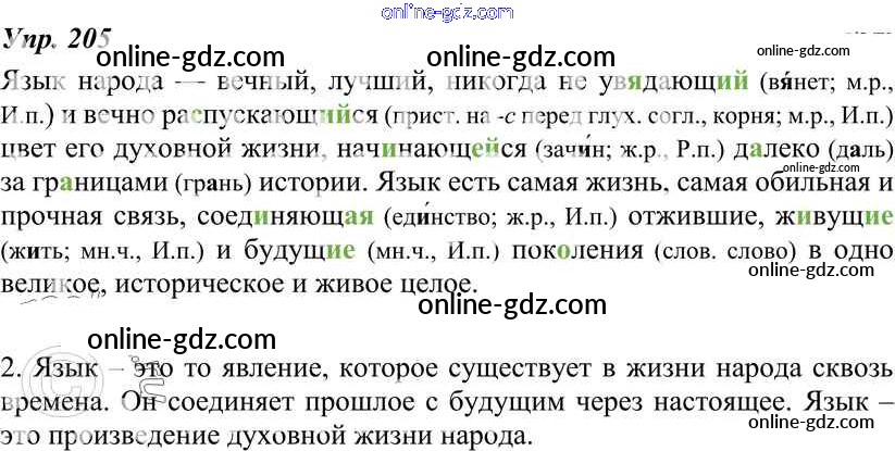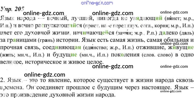 Готовые домашние задания по Русскому языку за 7 класс Учебник Разумовская, Львова УМК 2014 - Упражнения 205
