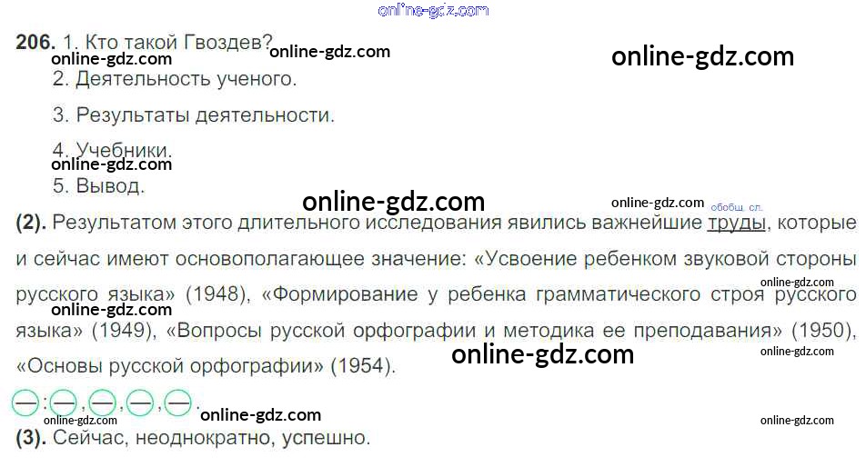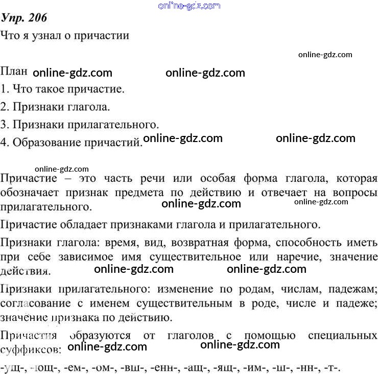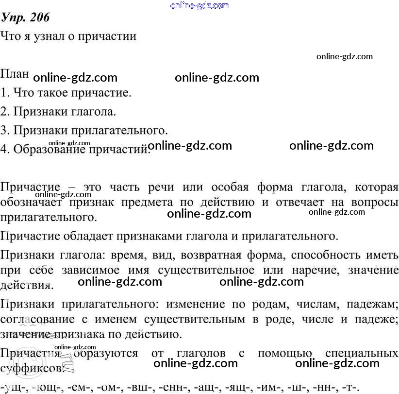 Готовые домашние задания по Русскому языку за 7 класс Учебник Разумовская, Львова УМК 2014 - Упражнения 206