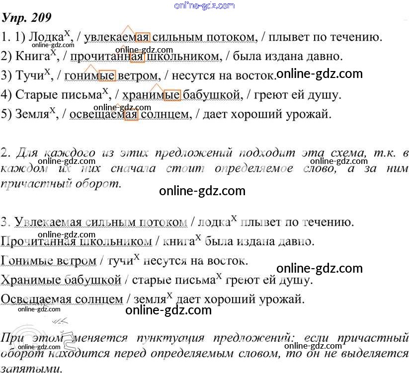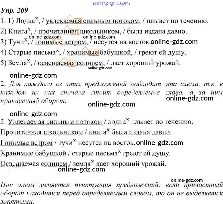 Готовые домашние задания по Русскому языку за 7 класс Учебник Разумовская, Львова УМК 2014 - Упражнения 209