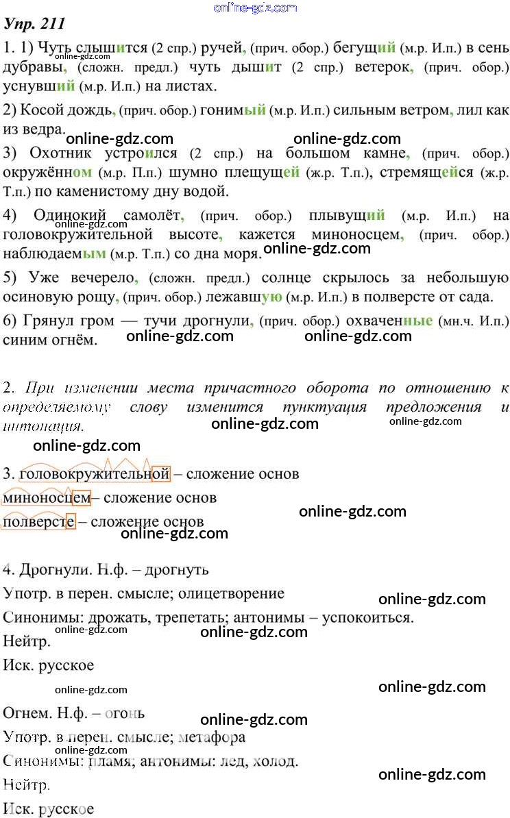 Готовые домашние задания по Русскому языку за 7 класс Учебник Разумовская, Львова УМК 2014 - Упражнения 211