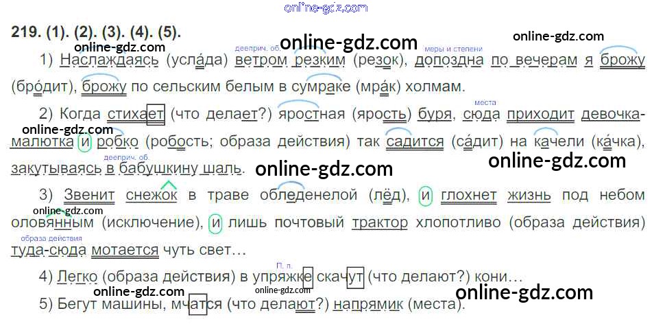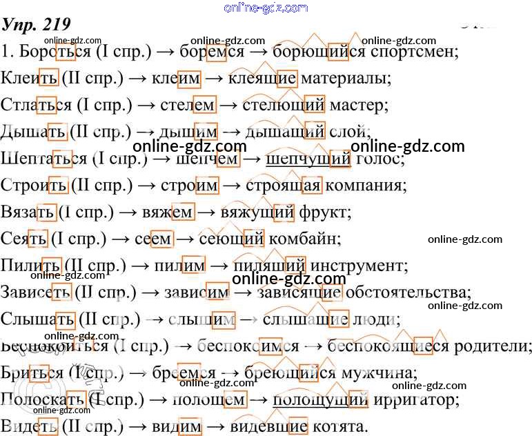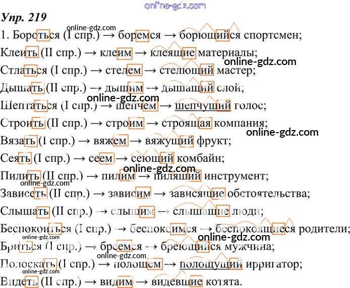 Готовые домашние задания по Русскому языку за 7 класс Учебник Разумовская, Львова УМК 2014 - Упражнения 219