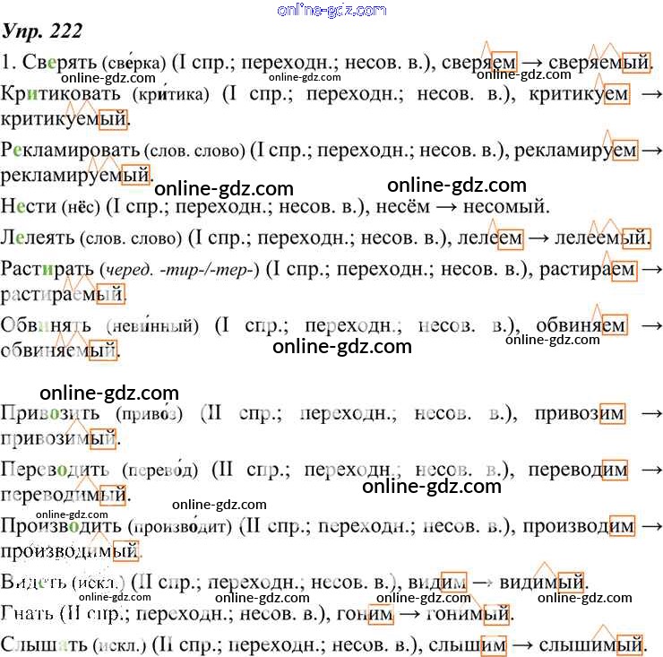 Готовые домашние задания по Русскому языку за 7 класс Учебник Разумовская, Львова УМК 2014 - Упражнения 222