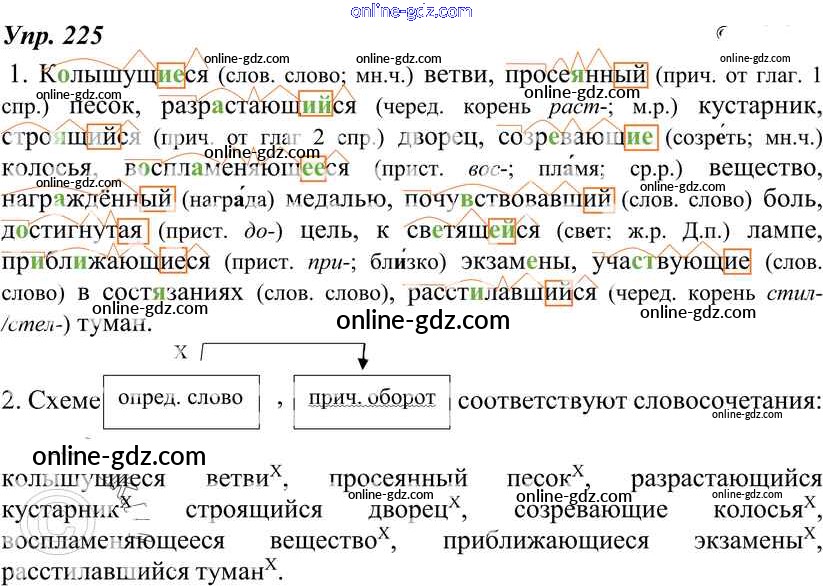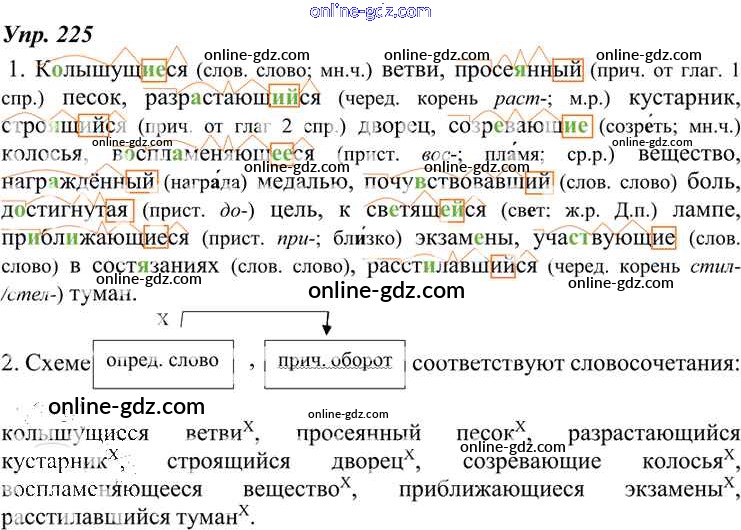 Готовые домашние задания по Русскому языку за 7 класс Учебник Разумовская, Львова УМК 2014 - Упражнения 225