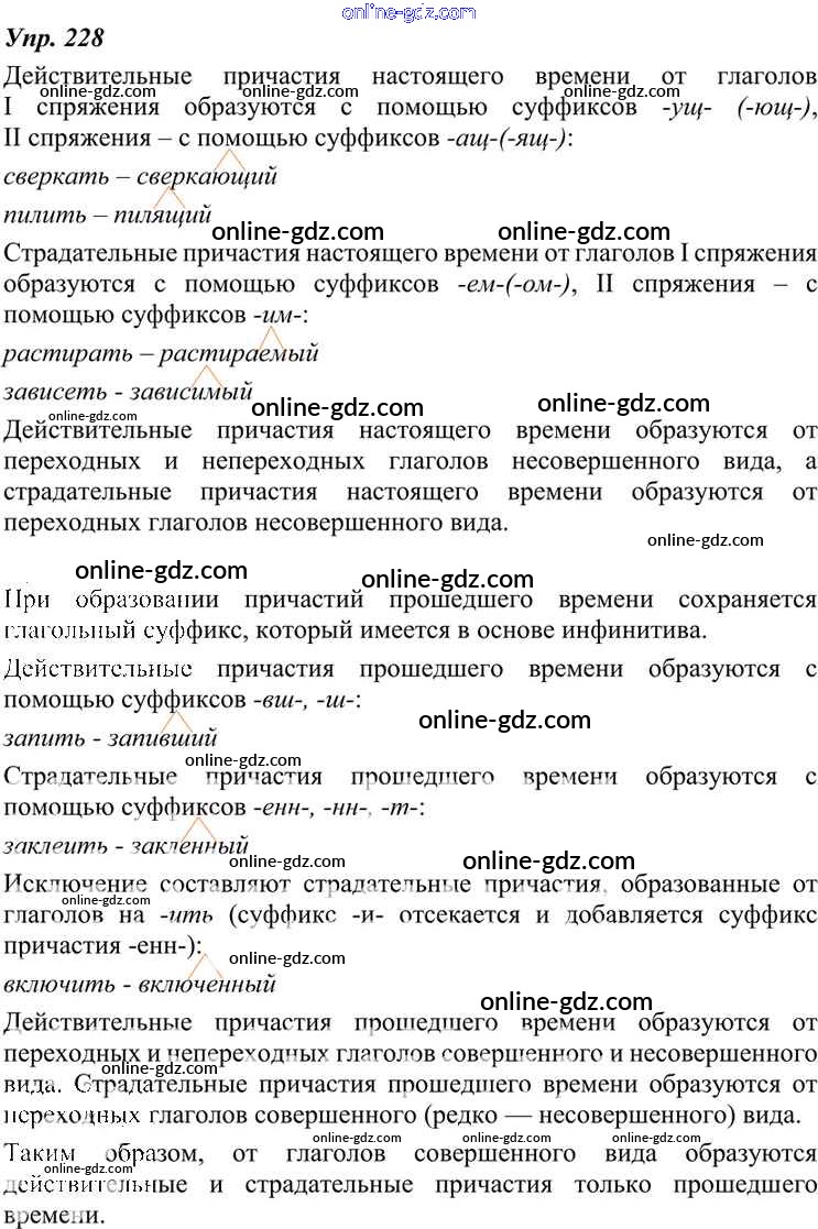 Готовые домашние задания по Русскому языку за 7 класс Учебник Разумовская, Львова УМК 2014 - Упражнения 228