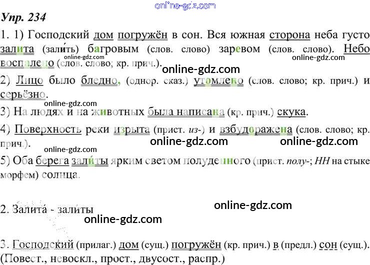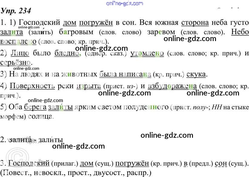 Готовые домашние задания по Русскому языку за 7 класс Учебник Разумовская, Львова УМК 2014 - Упражнения 234