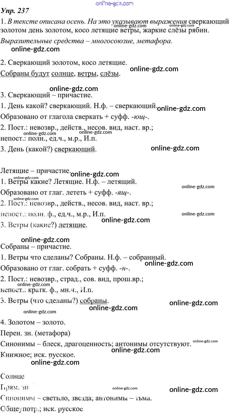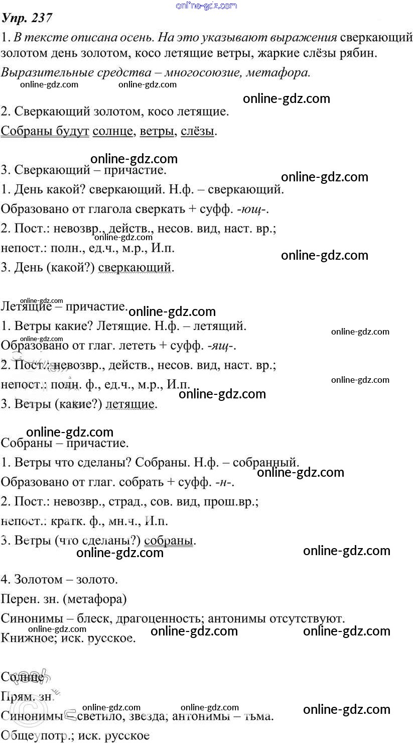 Готовые домашние задания по Русскому языку за 7 класс Учебник Разумовская, Львова УМК 2014 - Упражнения 237