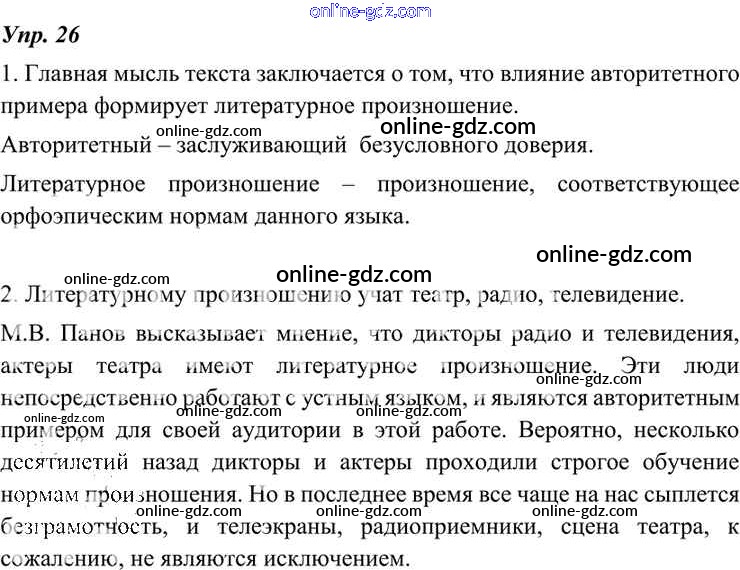 Готовые домашние задания по Русскому языку за 7 класс Учебник Разумовская, Львова УМК 2014 - Упражнения 26