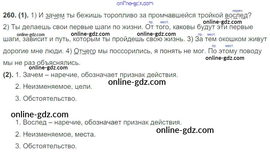 Готовые домашние задания по Русскому языку за 7 класс Учебник Разумовская, Львова УМК 2014 - Упражнения 260