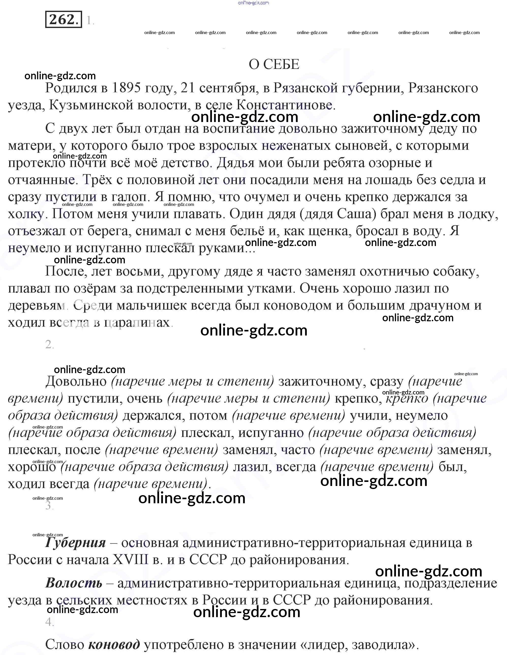 Готовые домашние задания по Русскому языку за 7 класс Учебник Разумовская, Львова УМК 2014 - Упражнения 262