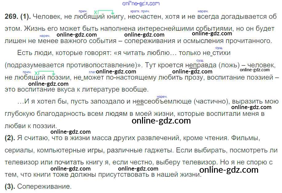 Готовые домашние задания по Русскому языку за 7 класс Учебник Разумовская, Львова УМК 2014 - Упражнения 269
