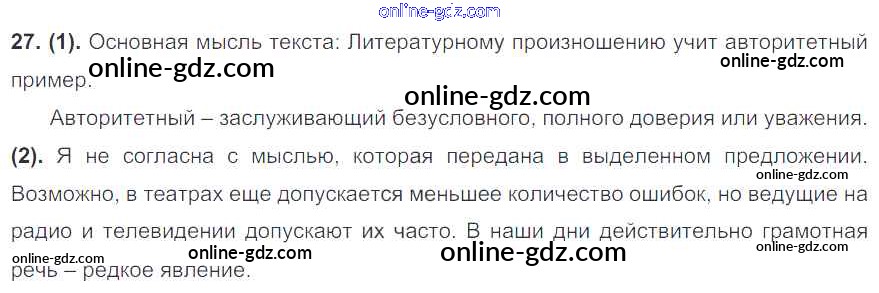 Готовые домашние задания по Русскому языку за 7 класс Учебник Разумовская, Львова УМК 2014 - Упражнения 27