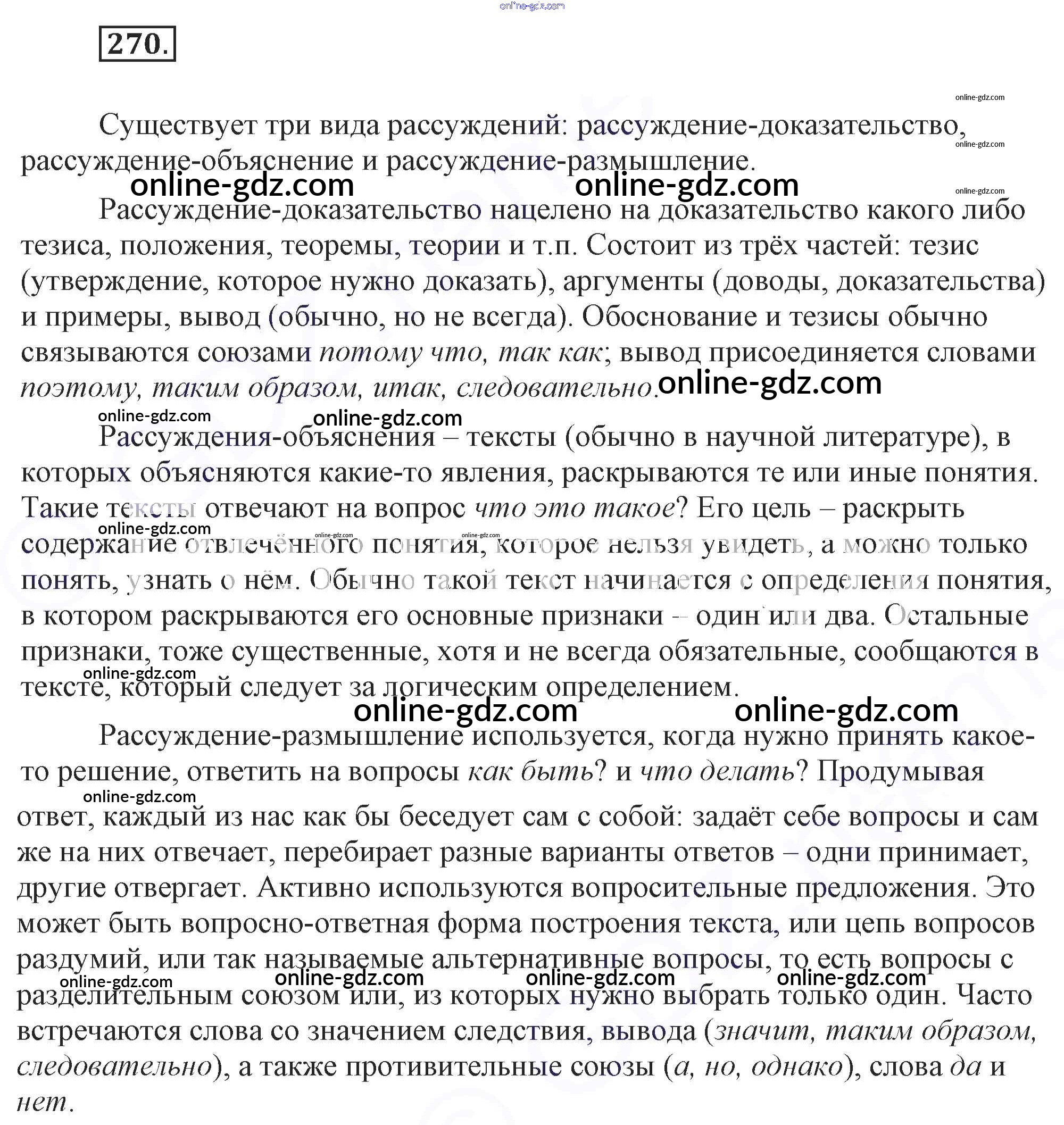 Готовые домашние задания по Русскому языку за 7 класс Учебник Разумовская, Львова УМК 2014 - Упражнения 270