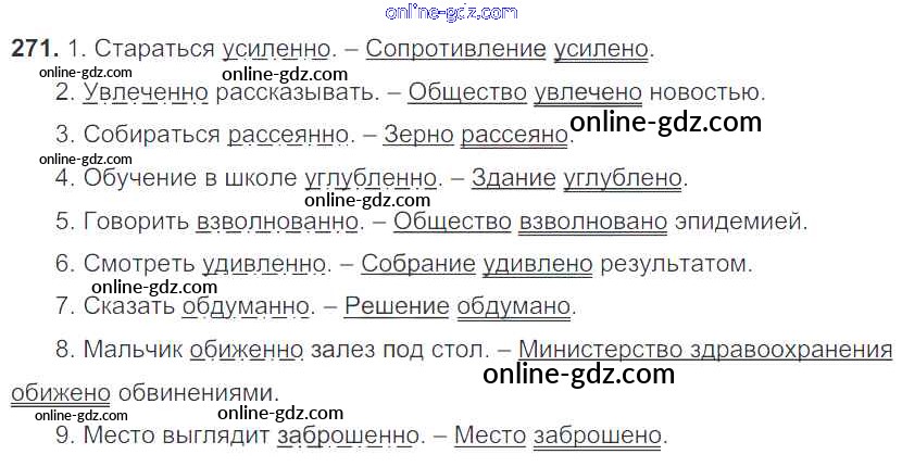 Готовые домашние задания по Русскому языку за 7 класс Учебник Разумовская, Львова УМК 2014 - Упражнения 271