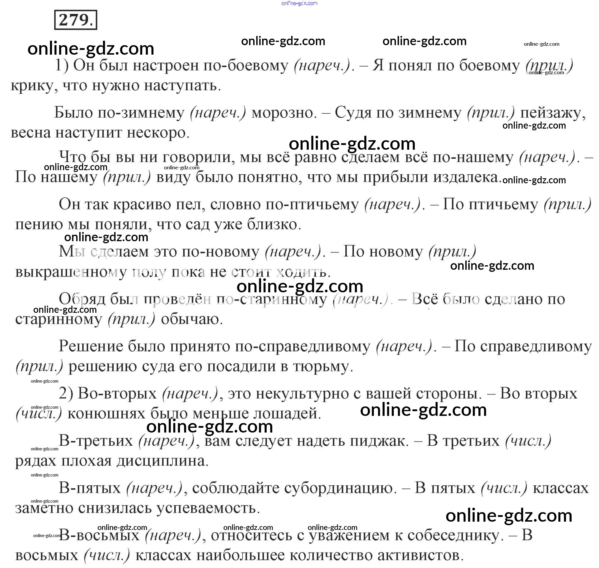 Готовые домашние задания по Русскому языку за 7 класс Учебник Разумовская, Львова УМК 2014 - Упражнения 279