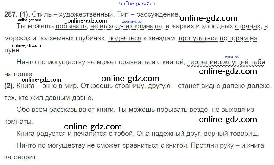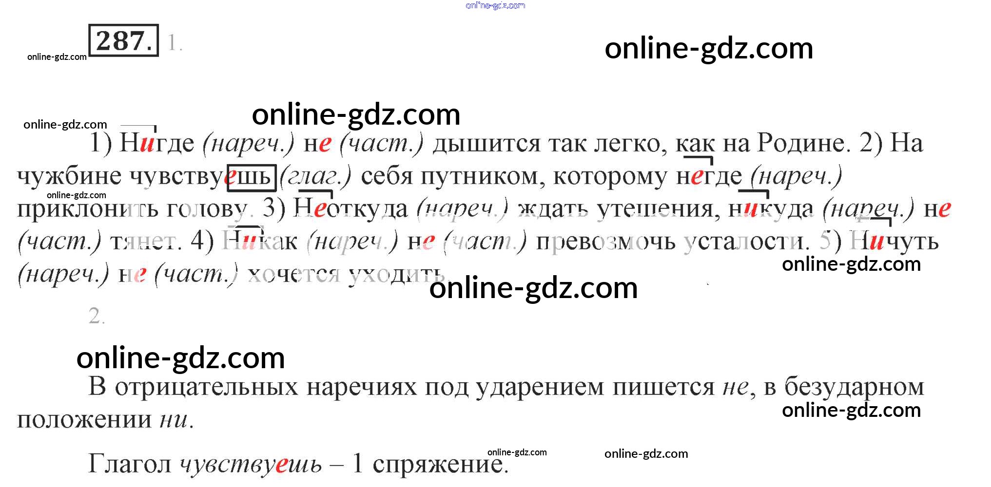 Готовые домашние задания по Русскому языку за 7 класс Учебник Разумовская, Львова УМК 2014 - Упражнения 287