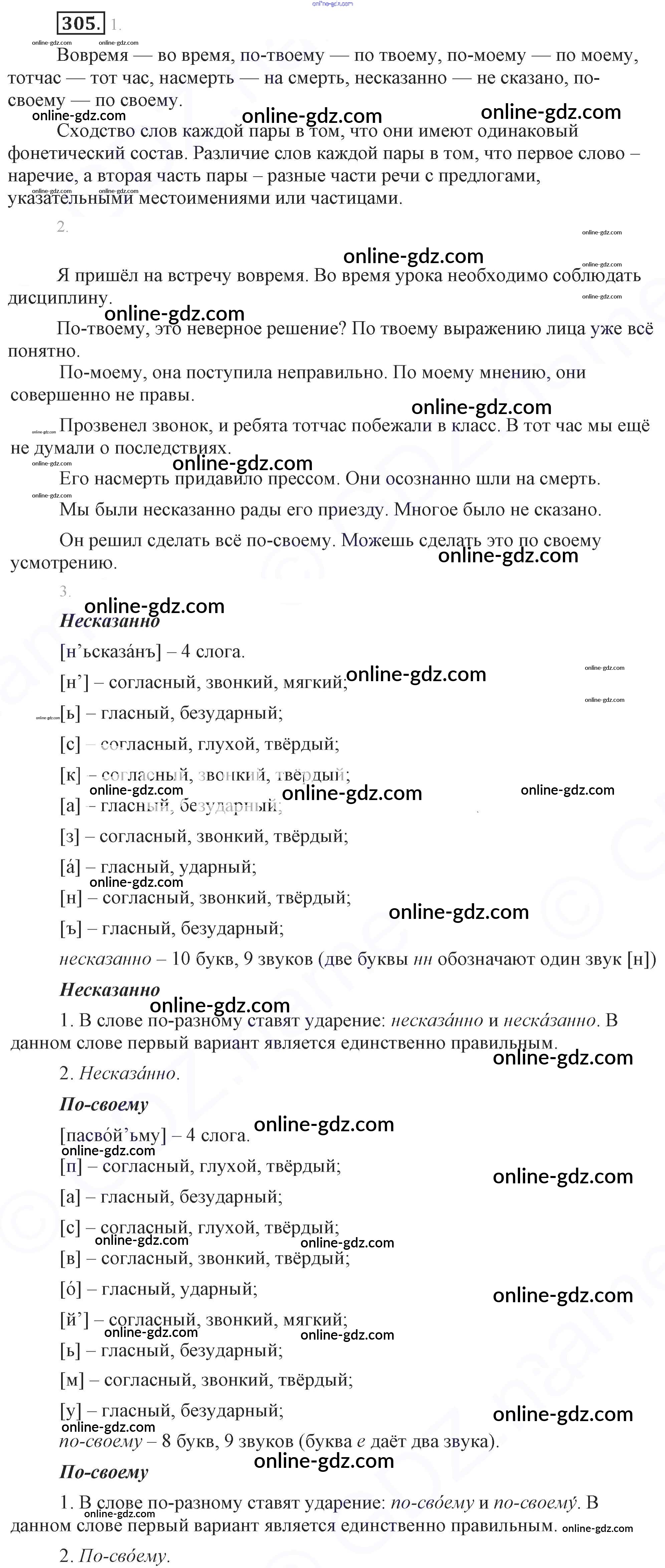 Готовые домашние задания по Русскому языку за 7 класс Учебник Разумовская, Львова УМК 2014 - Упражнения 305
