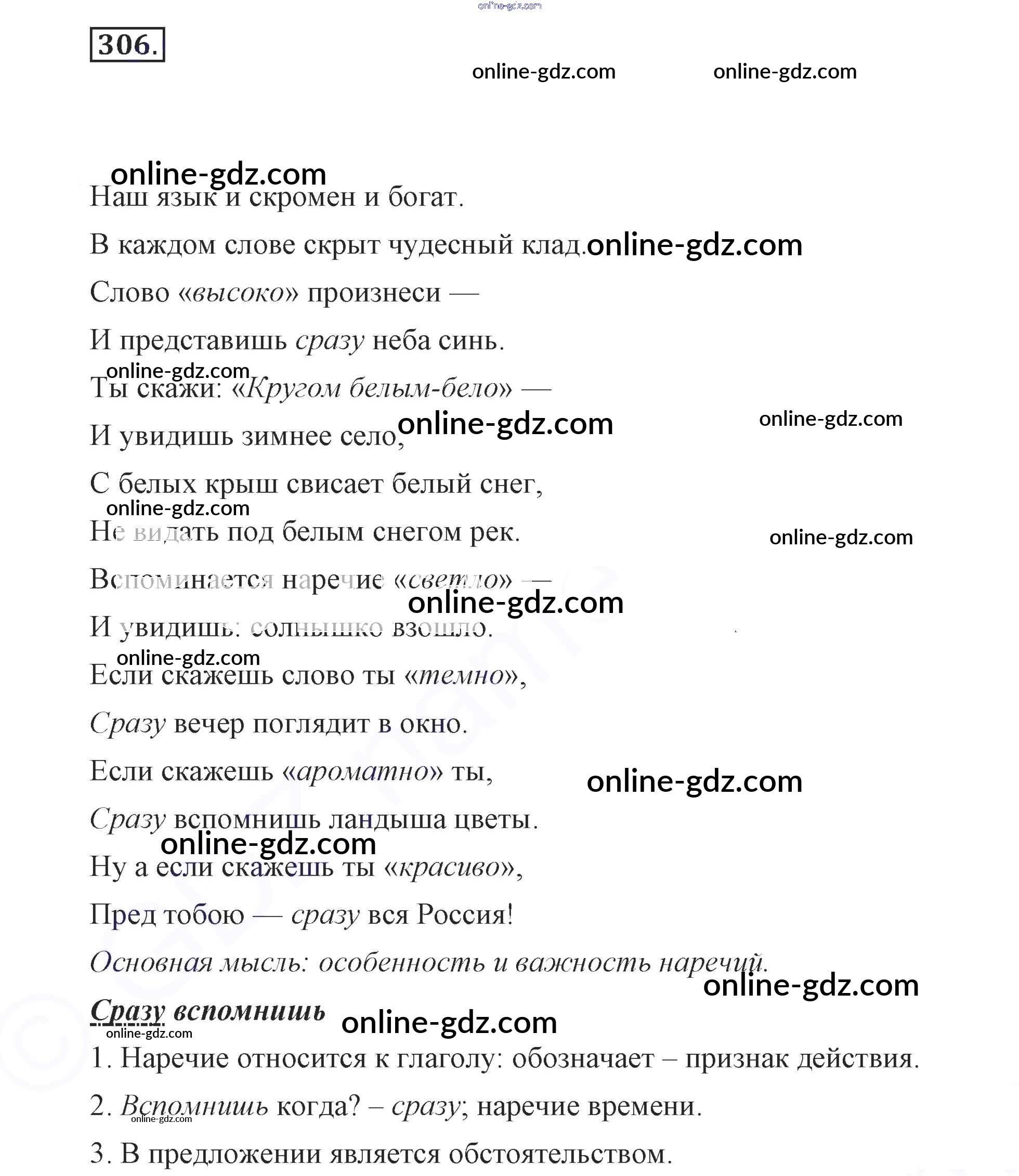 Готовые домашние задания по Русскому языку за 7 класс Учебник Разумовская, Львова УМК 2014 - Упражнения 306