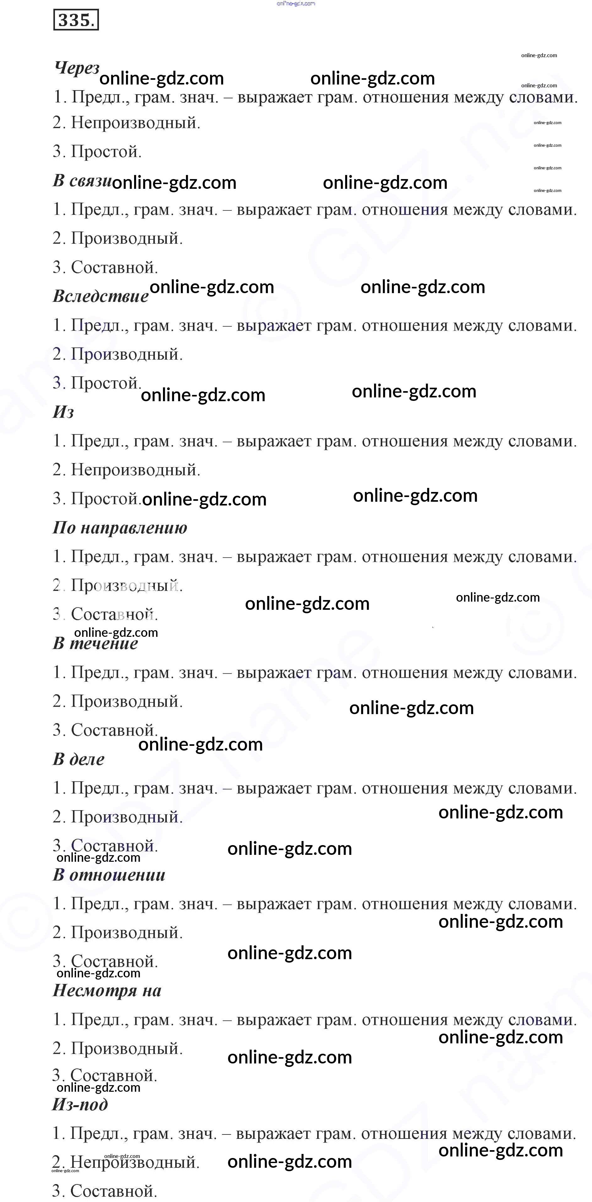 Готовые домашние задания по Русскому языку за 7 класс Учебник Разумовская, Львова УМК 2014 - Упражнения 335