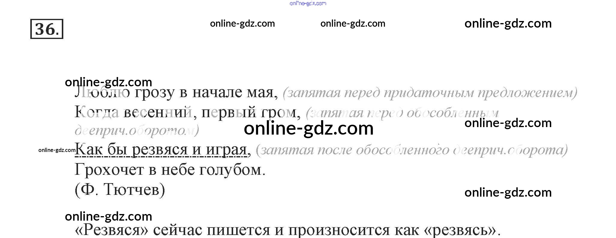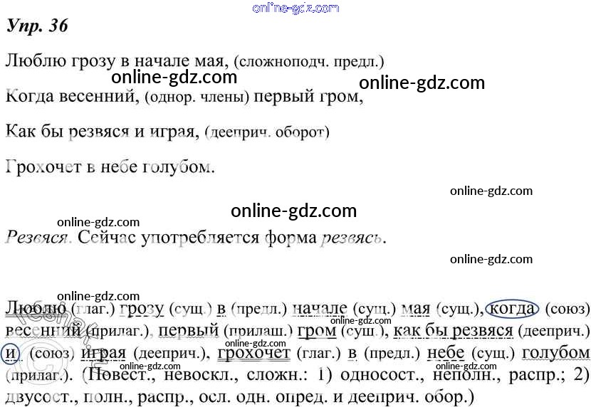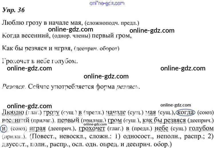 Готовые домашние задания по Русскому языку за 7 класс Учебник Разумовская, Львова УМК 2014 - Упражнения 36