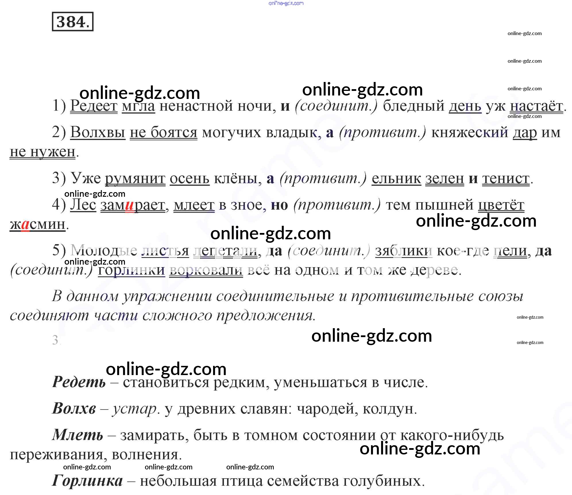 Готовые домашние задания по Русскому языку за 7 класс Учебник Разумовская, Львова УМК 2014 - Упражнения 384