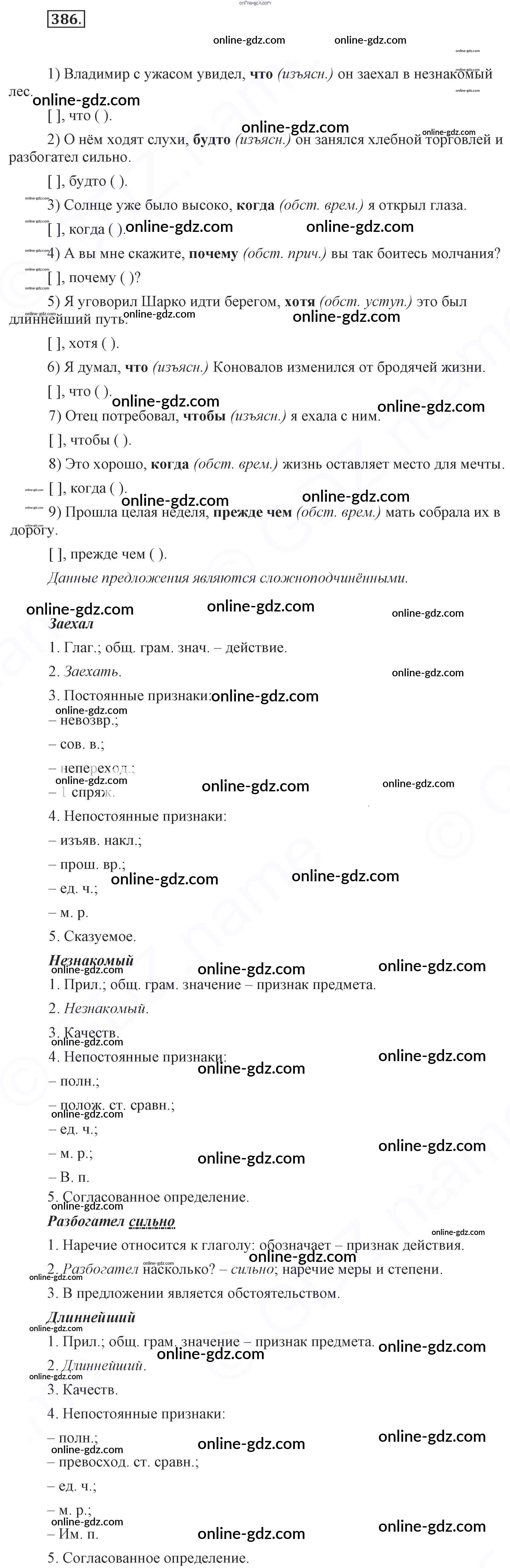 Готовые домашние задания по Русскому языку за 7 класс Учебник Разумовская, Львова УМК 2014 - Упражнения 386