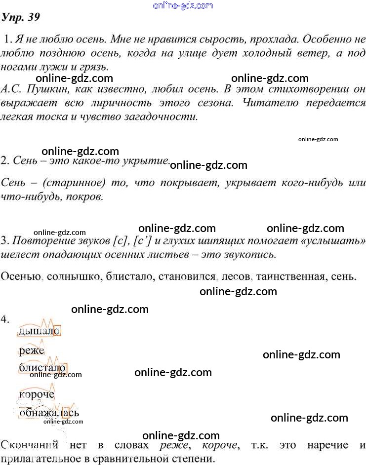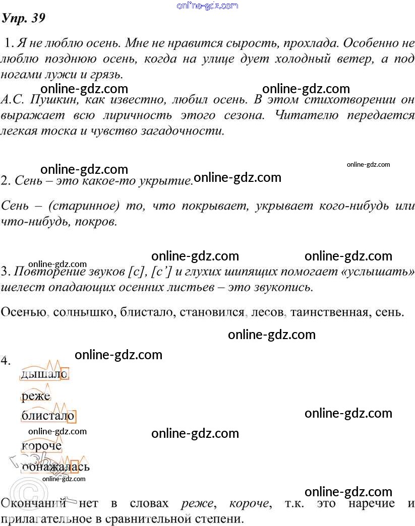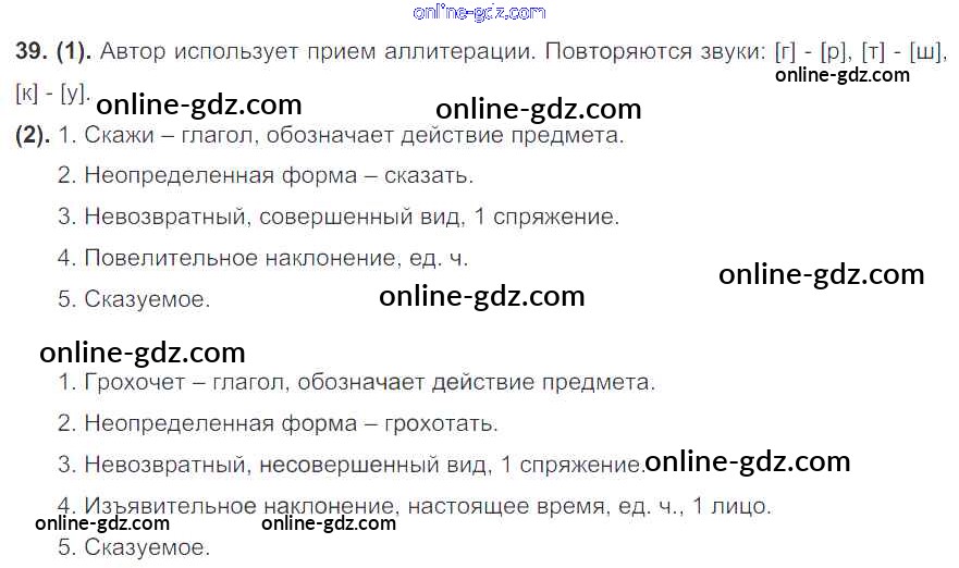 Готовые домашние задания по Русскому языку за 7 класс Учебник Разумовская, Львова УМК 2014 - Упражнения 39