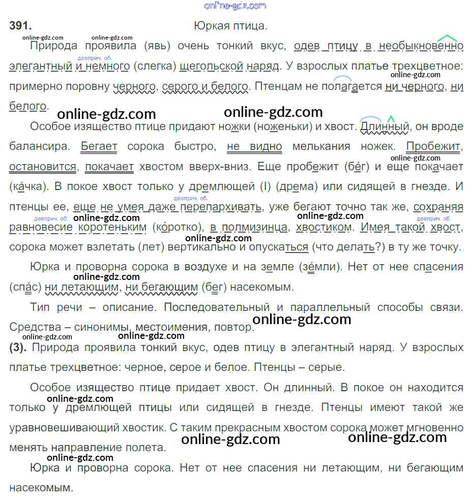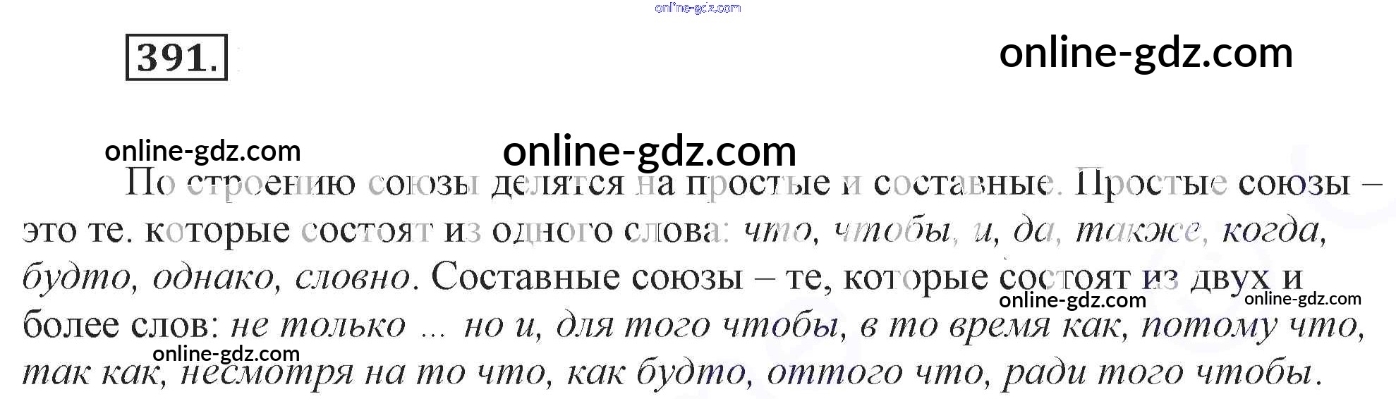 Готовые домашние задания по Русскому языку за 7 класс Учебник Разумовская, Львова УМК 2014 - Упражнения 391