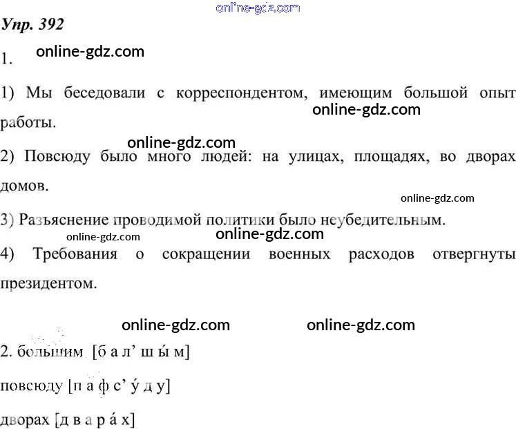 Готовые домашние задания по Русскому языку за 7 класс Учебник Разумовская, Львова УМК 2014 - Упражнения 392