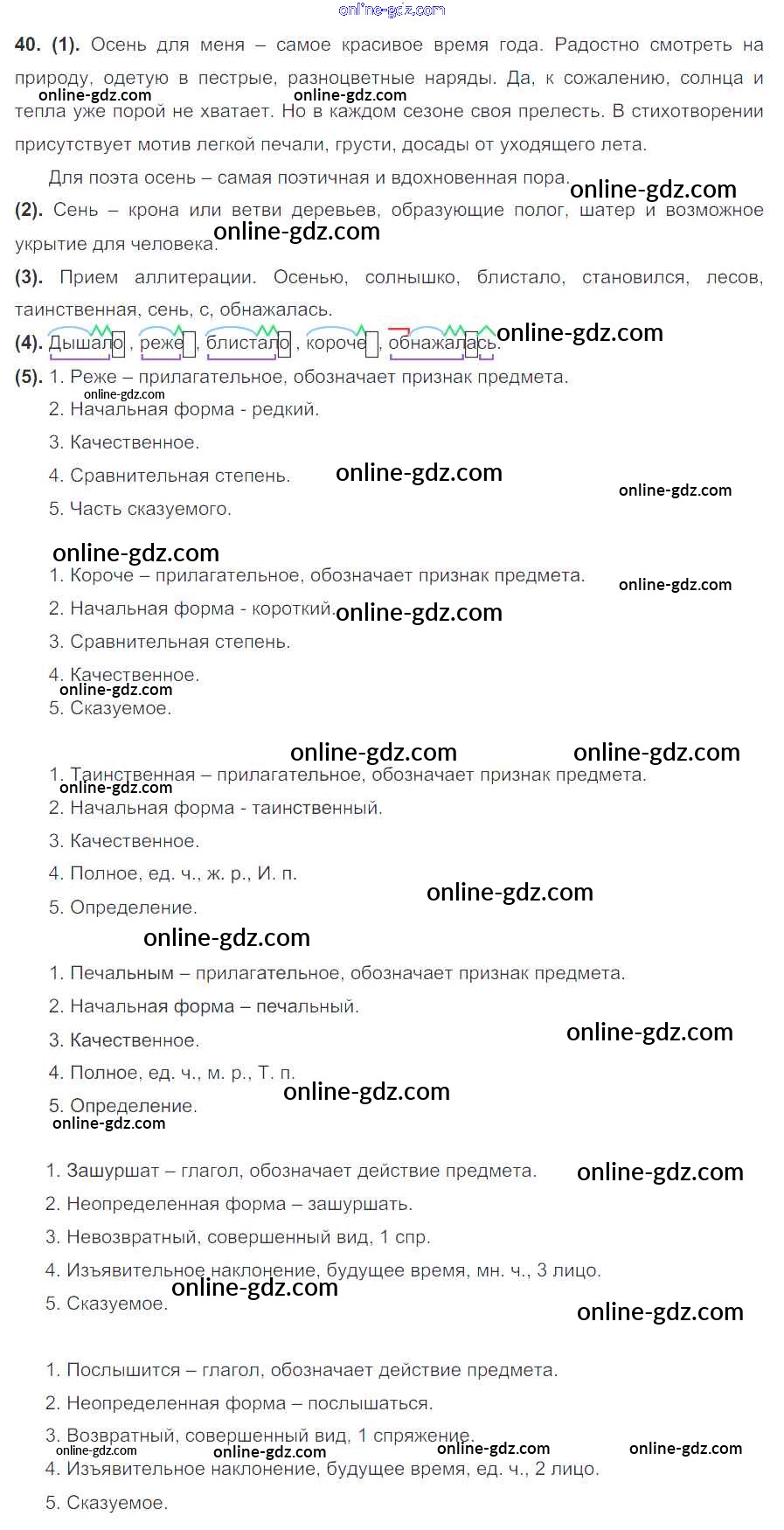 Готовые домашние задания по Русскому языку за 7 класс Учебник Разумовская, Львова УМК 2014 - Упражнения 40