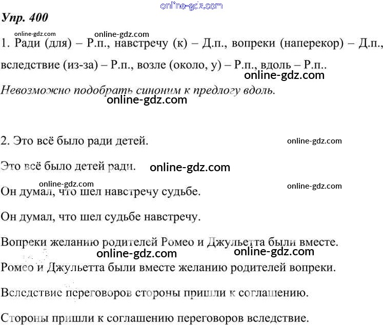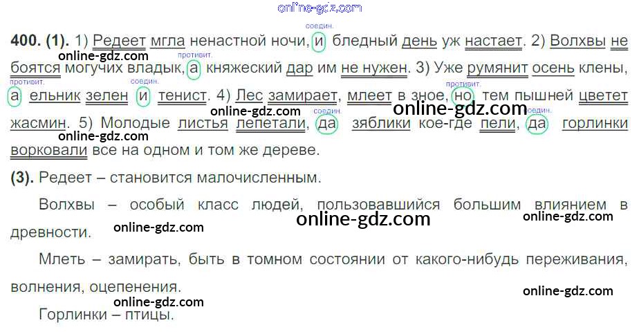 Готовые домашние задания по Русскому языку за 7 класс Учебник Разумовская, Львова УМК 2014 - Упражнения 400