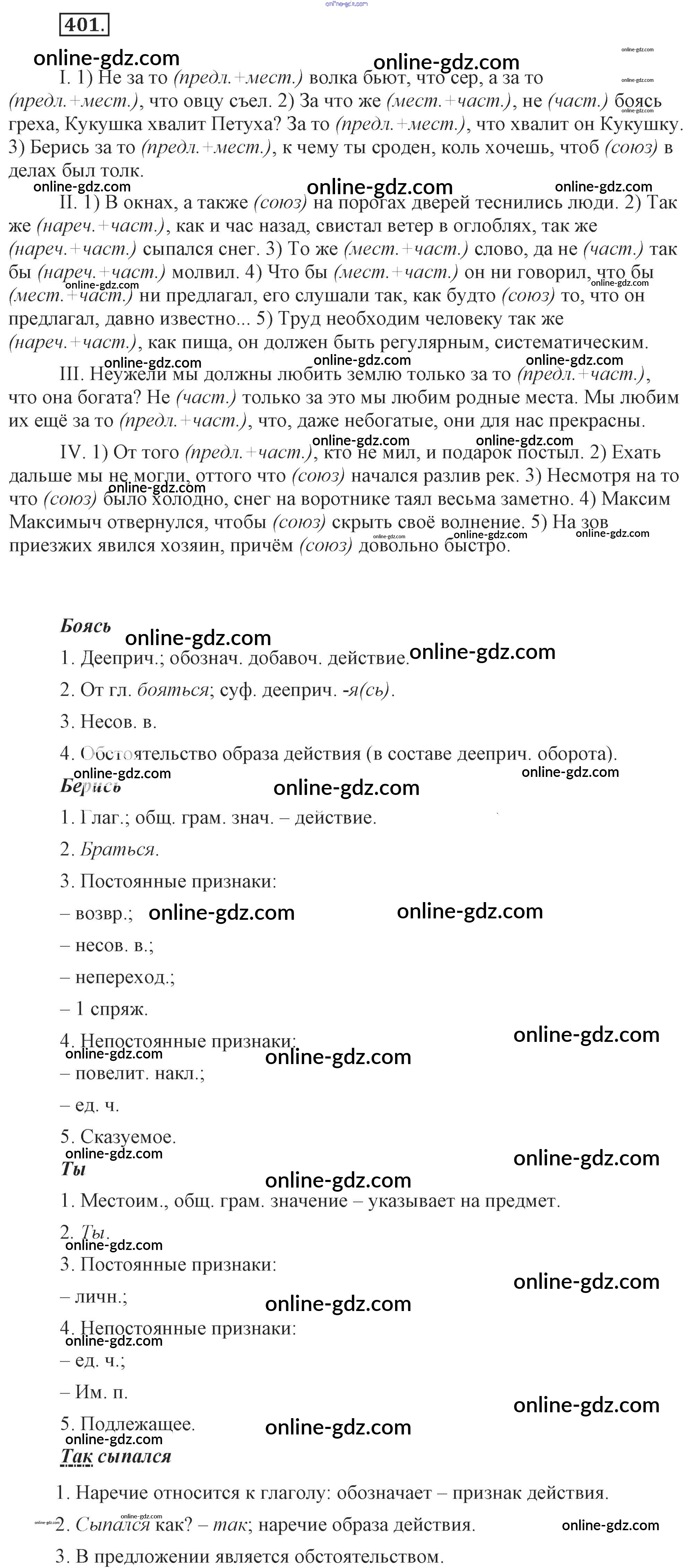 Готовые домашние задания по Русскому языку за 7 класс Учебник Разумовская, Львова УМК 2014 - Упражнения 401