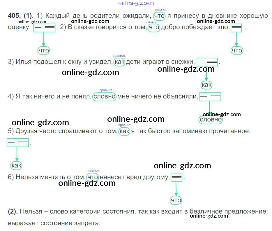 Готовые домашние задания по Русскому языку за 7 класс Учебник Разумовская, Львова УМК 2014 - Упражнения 405