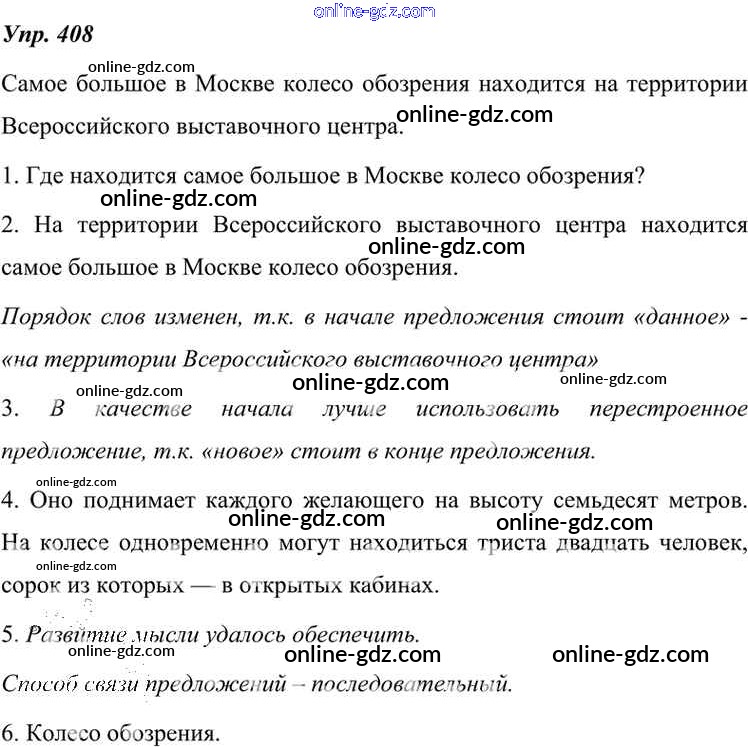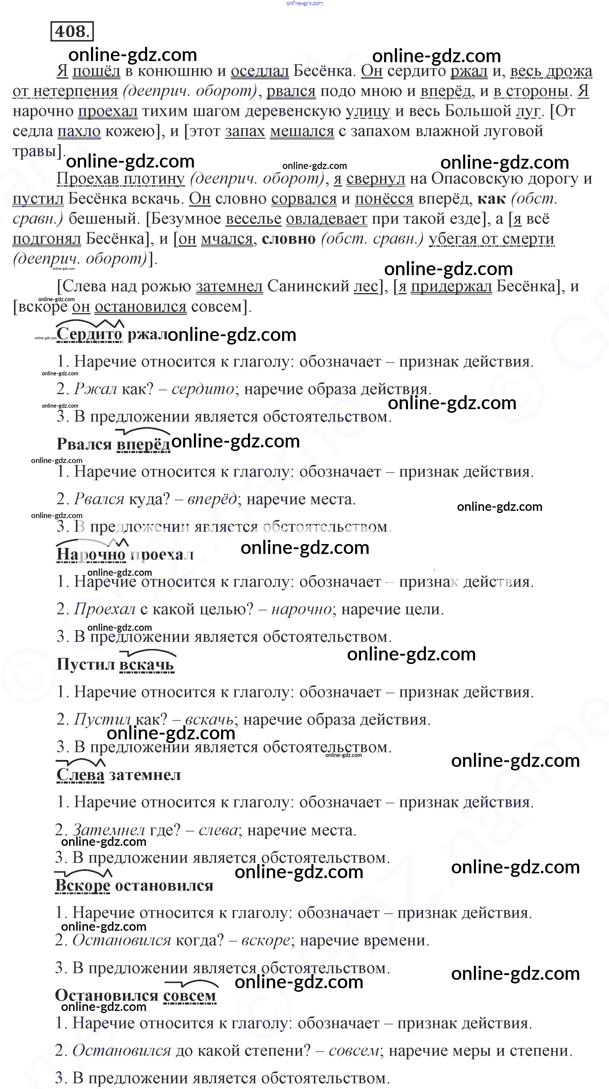Готовые домашние задания по Русскому языку за 7 класс Учебник Разумовская, Львова УМК 2014 - Упражнения 408