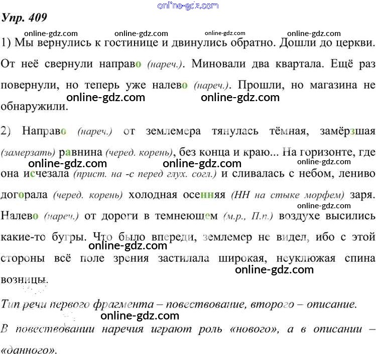 Готовые домашние задания по Русскому языку за 7 класс Учебник Разумовская, Львова УМК 2014 - Упражнения 409