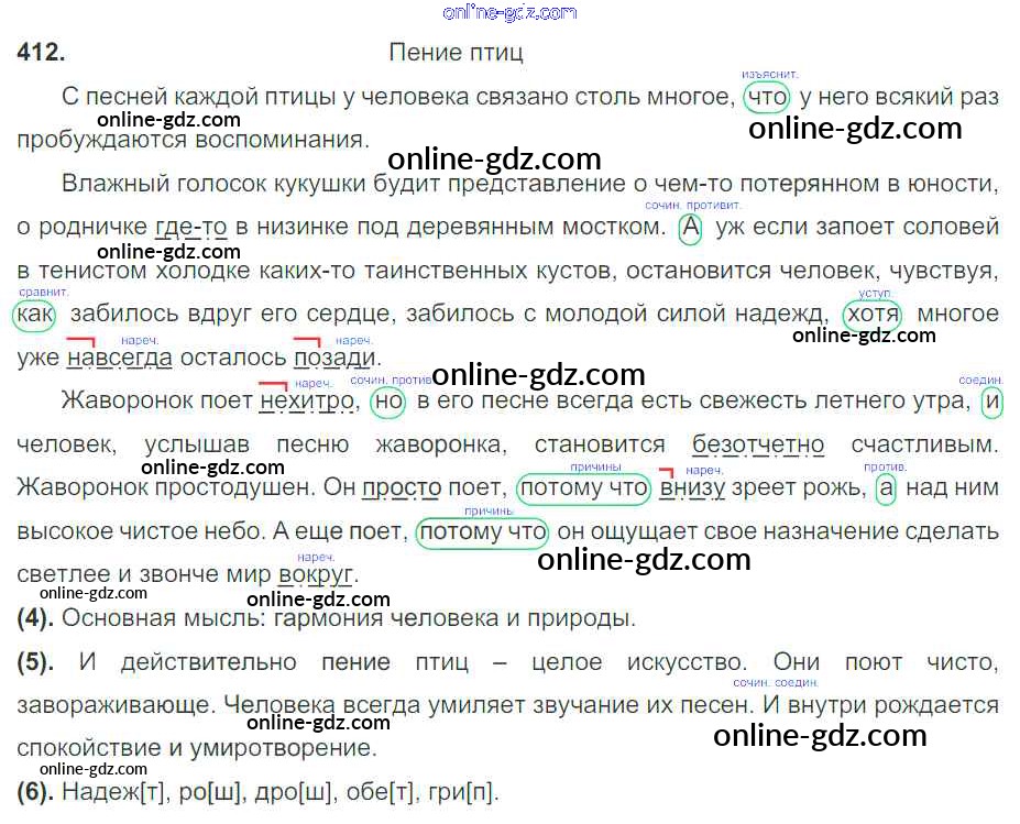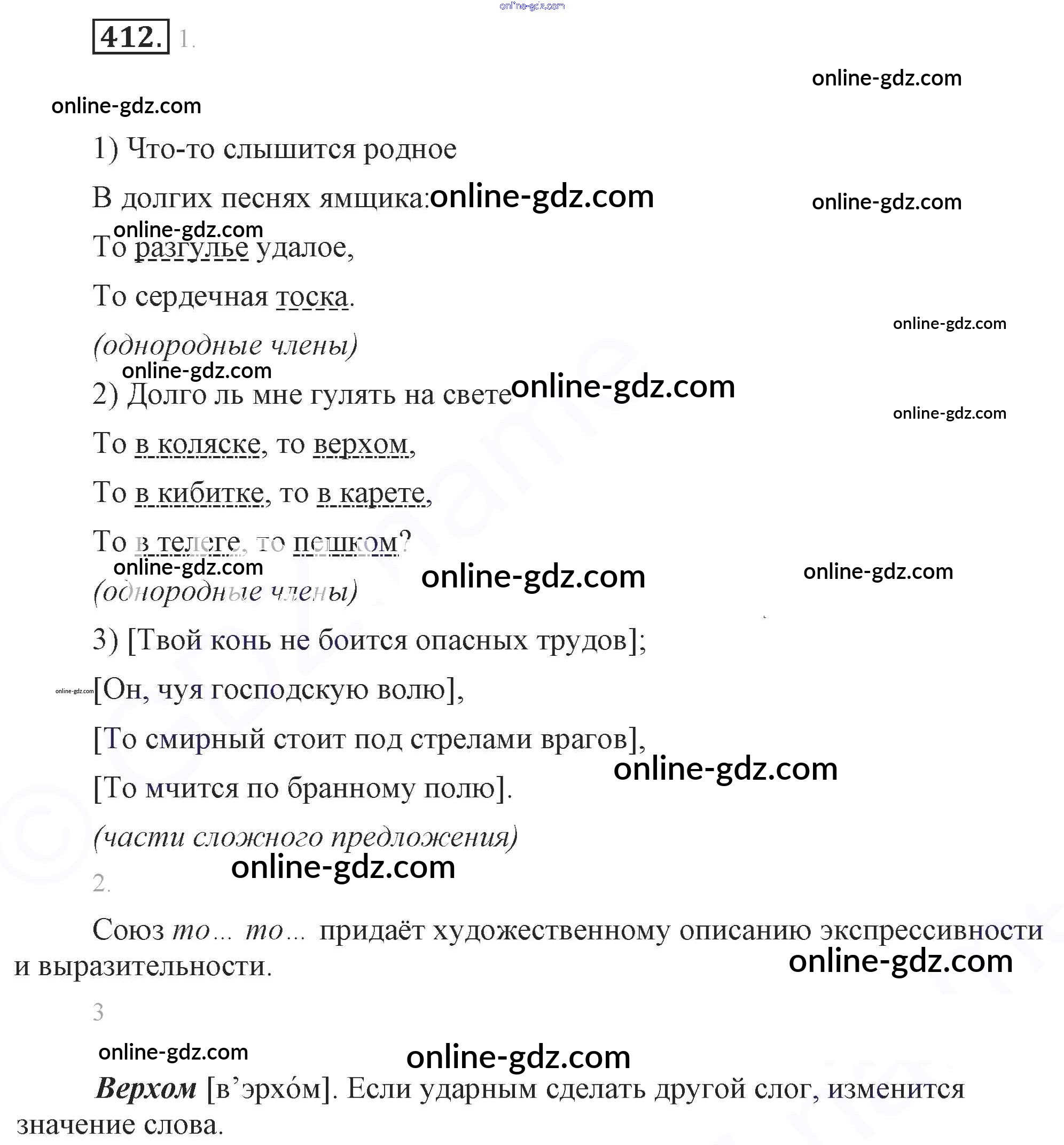 Готовые домашние задания по Русскому языку за 7 класс Учебник Разумовская, Львова УМК 2014 - Упражнения 412