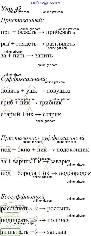 Готовые домашние задания по Русскому языку за 7 класс Учебник Разумовская, Львова УМК 2014 - Упражнения 42